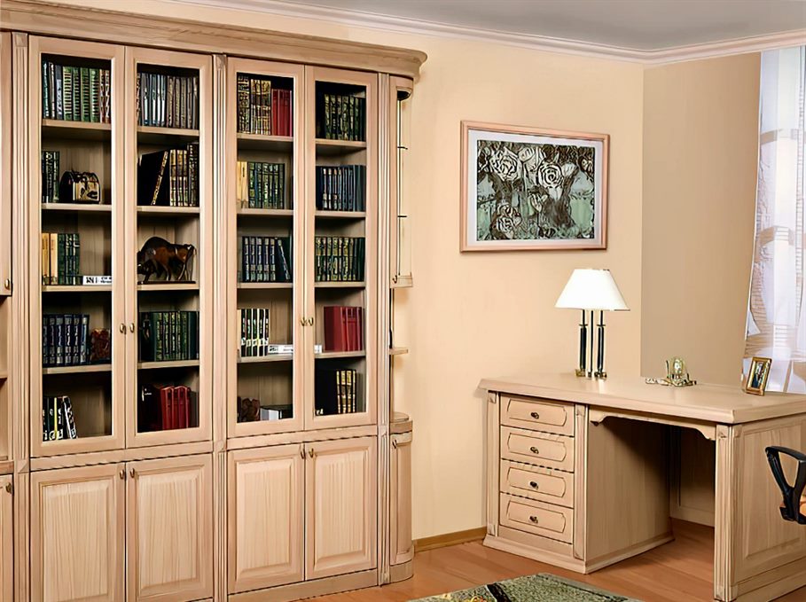 Светлый, белый цвет, в котором выполнена библиотека Галатея – необыкновенное решение. Этот дизайн придаёт мебели лёгкости и свежести. Угловая классическая модель производится с множеством закрытых стеклянных и крайних открытых полок для хранения книг. Конструкция модулей позволяет легко открывать дверки, что облегчает доступ к книгам. При этом они всегда будут оберегать ценные для вас предметы. Для установки библиотеки Галатея не нужно много места, она отлично встанет в угловое пространство.