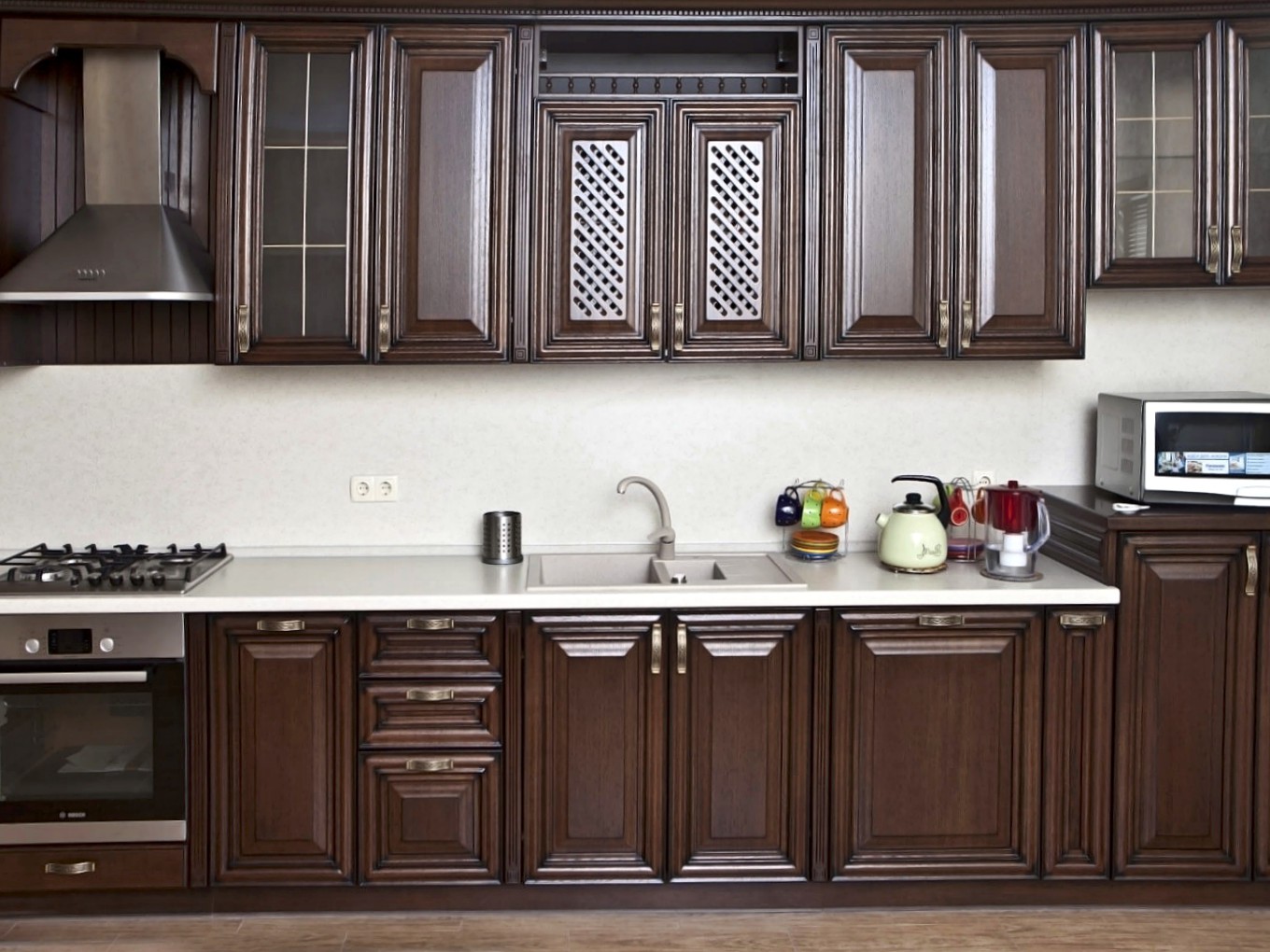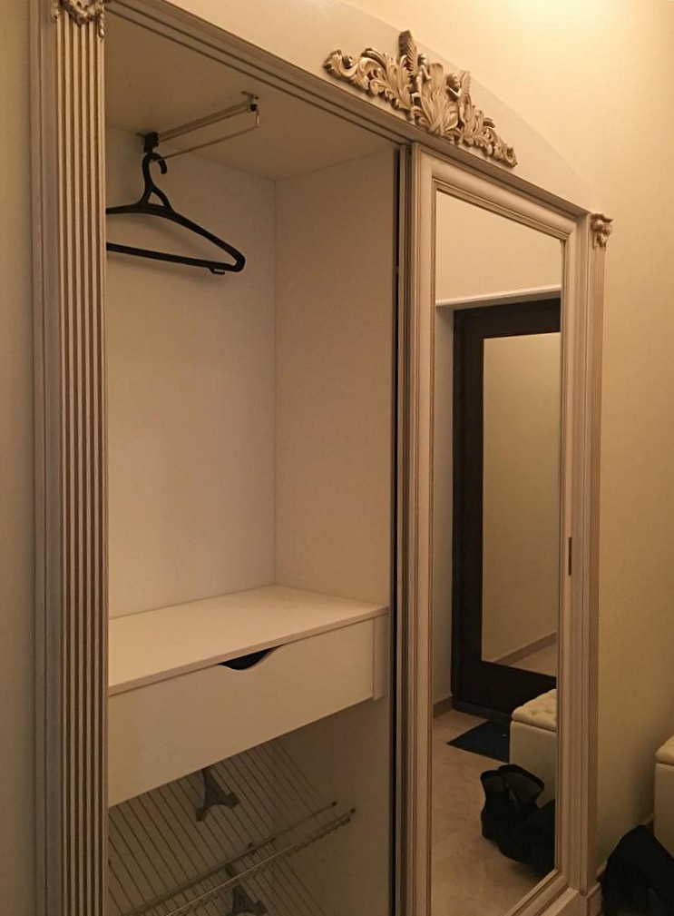 У нас высокие потолки, так что хотели шкаф до потолка и что бы гармонировал с остальной мебелью....