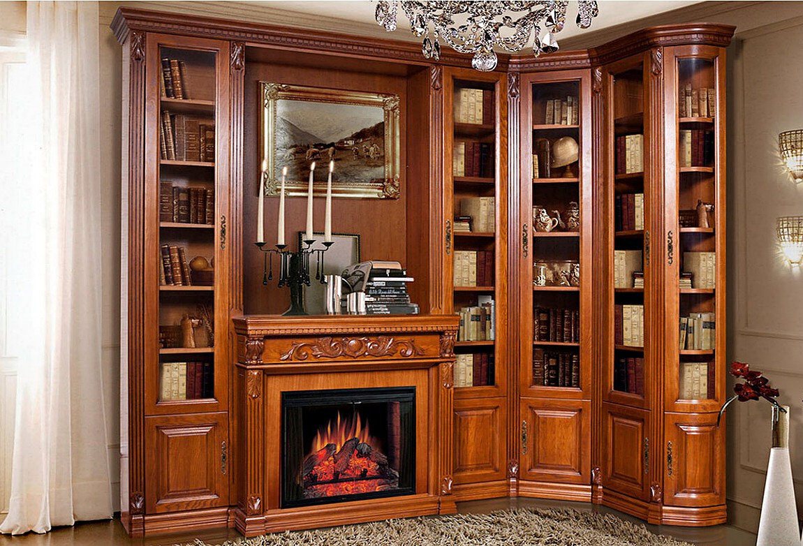 Несколько необычное оформление гостиной – для любителей минимализма. Набор мебели из массива представлен открытым стеллажом с узкими открытыми полками, предназначенными для книг, сувениров или безделушек и довольно большим столом, за которым может собраться большая компания. Цвет мебели на фото каталога – темно-бежевый, немного мрачноватый. Но клиент может выбрать и любой другой – мы, как производители мебели, работая на заказ, стремимся выполнить все пожелания клиента, сохранив при этом базовую цену. То же самое можно сказать и о размерах – мы можем незначительно изменить основные параметры, чтобы мебель идеально «вписалась» в интерьер комнаты.