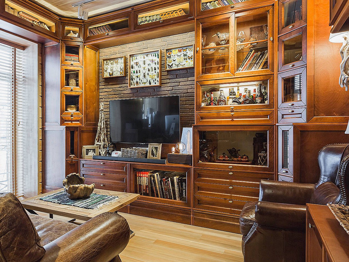 Все элементы гостиной Изящество выполнены опытными мастерами. Белая модель, наполненная светом, привлекает к себе взгляды благодаря утончённым резным деталям, деревянным накладкам, карнизам, воздушным узорам. Созданная по индивидуальному проекту, она всегда будет выглядеть роскошно, независимо от размеров гостиной. Лучшие материалы, стеклянные полочки, подсветка, центральный модуль, подходящий для размещения картин, предметов искусства, телевизора. Всё это позволяет дополнить уютную, элегантную атмосферу.