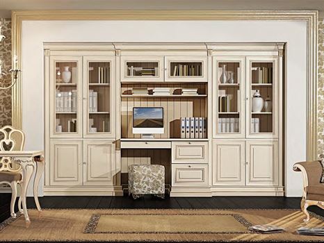 Этот набор мебели для кабинета – изюминка нашей коллекции. Стиль исполнения – помпезная классика, материал – массив цельного дерева. В набор входит письменный стол и сервант, будто изготовленные лучшими мебельщиками 19 века. На фото каталога представлено интересное сочетание – мебель, отделка стен, пола и потолка подобрано в одной цветовой гамме, в теплом фисташковом тоне. Но не менее выигрышно кабинет будет смотреться и в другом цвете – в том, который выберет клиент. Изменить можно и размеры мебели – для того, чтобы все отлично смотрелось в интерьере конкретного помещения. Мы, производители мебели, предоставляем нашим покупателям право выбора расцветки фасадов и корректирования параметров (ширины, высоты, длины) без существенного изменения цены. При работе «на заказ» это не сложно.