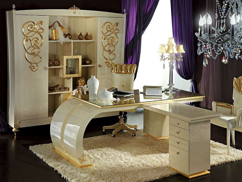 В кабинете, как правило, происходит рабочий процесс, а также можно принимать гостей и вести переговоры. В изумительной атмосфере интерьера Идиллии, созданного по индивидуальному проекту, переплетаются прошлая и нынешняя эпоха. Мебель с причудливыми завитками, столы и стулья с грациозно изогнутыми ножками, необыкновенно роскошная хрустальная люстра, инкрустированная золотом – всё это благолепие мирно и достойно включает в свой облик новейшие достижения прогресса. Кабинет Идиллия может стать гордостью вашей семьи и переходить от поколения к поколению, храня историю времён.