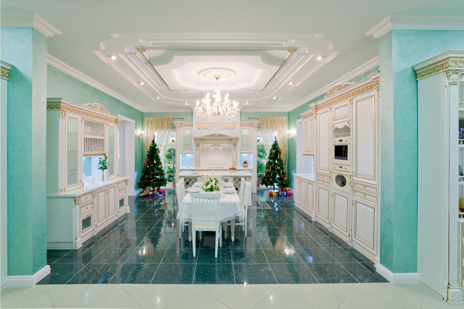 Большая белая кухня Авангард в стиле классика выполнена из массива. Она станет замечательным решением для просторного помещения. На фото – шкафы раздельные, стоят в виде буквы «П», часть из них – с застекленными дверцами, часть – с глухими. Предусмотрены места для встраиваемой бытовой техники, что способствует гармоничному использованию пространства. Стилизация под современный барокко выглядит весьма правдоподобно из-за элементов лепнины. На заказ мы можем изготовить другой вариант кухни – с П-образными слитными шкафами или угловой. Для производителей мебели, работающим по системе индивидуальных заказов, это не принципиально