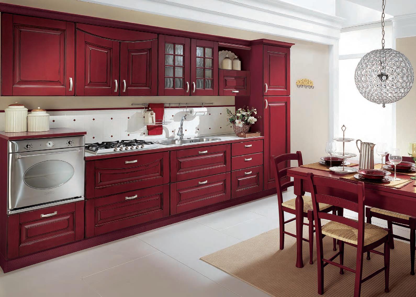 Классический стиль в кухне Гера представлен во всей красе. Тут присутствуют самые характерные черты этого стилевого направления: фасады из массива, благородный цвет красного дерева в сочетании с белой столешницей, прямоугольная фрезеровка, витрины с перегородками, резной багет, правильно подобранные ручки. Прямая, но достаточно большая кухня отлично будет смотреться в загородном доме, оформленном в стиле классика. Все нижние шкафы сделаны с выдвижными ящиками, что значительно облегчит хозяйке пользование ими и усовершенствует процесс готовки. Окончательное цветовое решение и конструкцию гарнитура будет при заказе выбирать сам клиент.