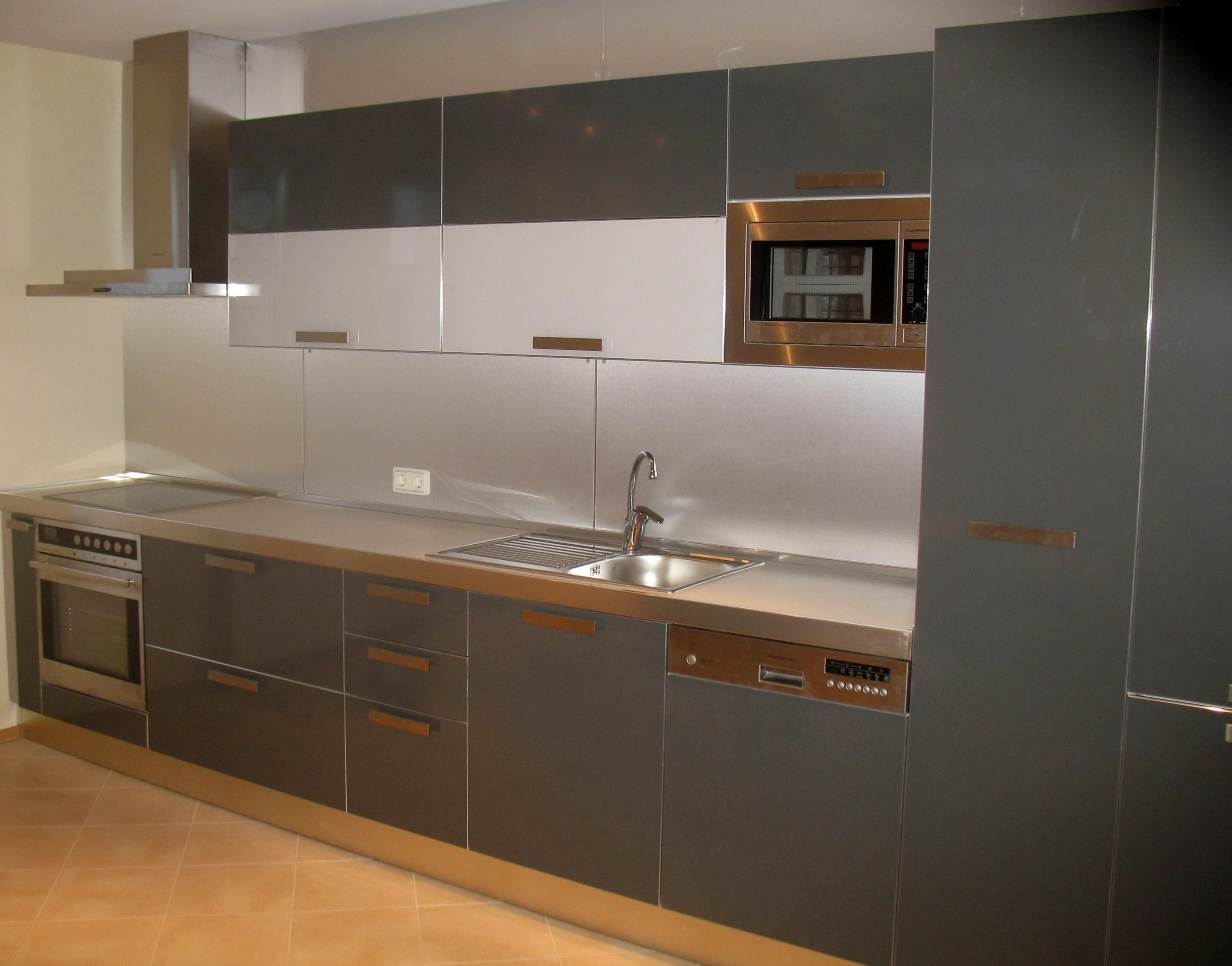 Большая прямая кухня в стиле хай-тека – для любителей современных технологий. Здесь нет ничего лишнего, но в тоже время этот гарнитур смотрится лаконично и изысканно, за счет насыщенного серого цвета. На заказ мы можем изготовить и угловой вариант этого гарнитура и несколько изменить размеры. Это не проблема для производителя мебели. Полностью закрытые шкафы без каких-либо вставок с откидными дверцами и объемными выдвижными ящиками облегчают процесс уборки. Есть места для встроенной бытовой техники. Здесь будет отлично смотреться столешница из искусственного камня. В большом узком шкафу поместится вся кухонная утварь.
