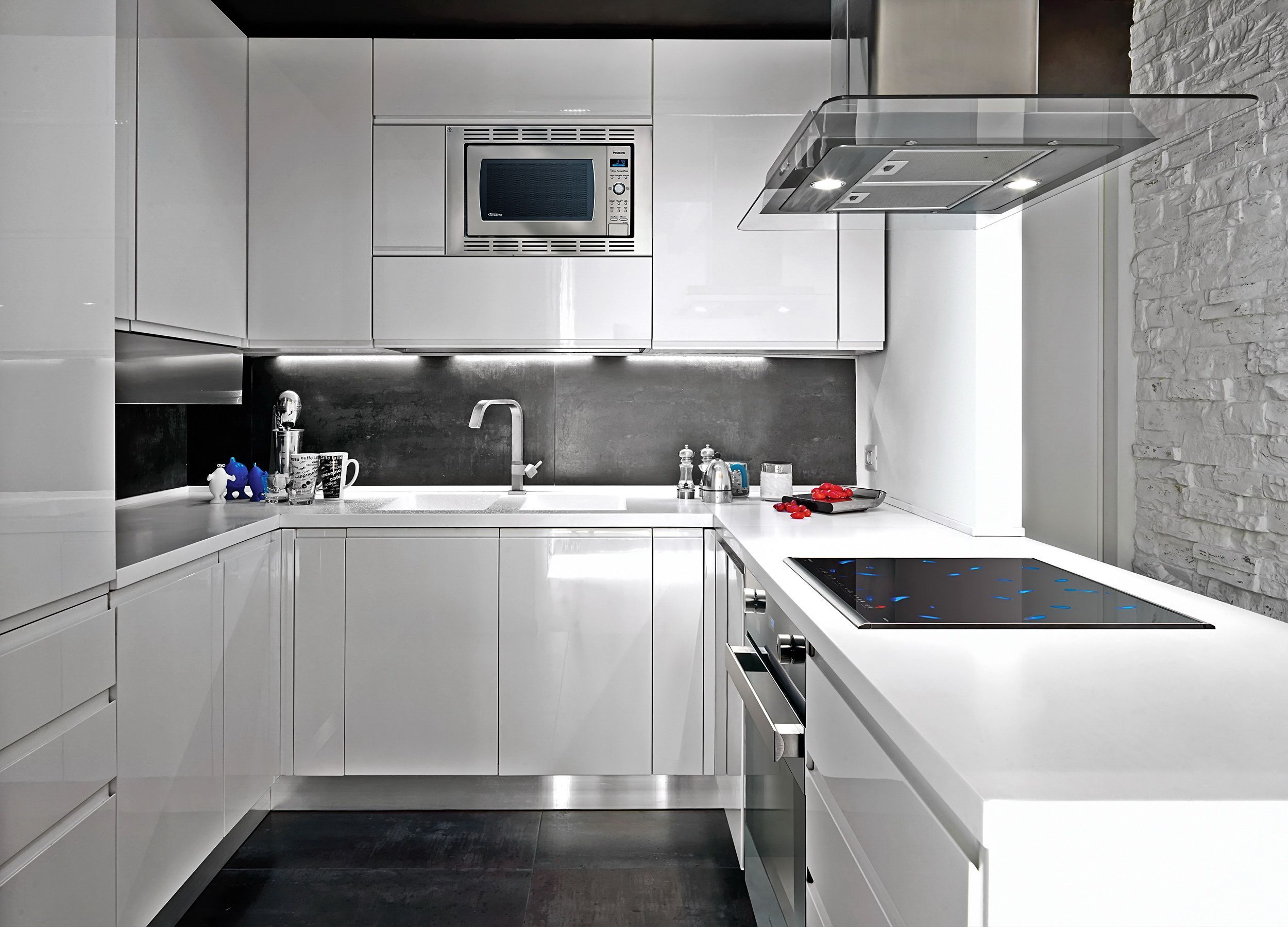 Кухня Древна – это идеальный представитель стиля хай-тек. Динамичные, деловые, деятельные молодые жители мегаполиса оценят использование пластика в изготовлении мебельных фасадов, функциональную сверхсовременную фурнитуру, продуманное освещение, серебристо-металлический цвет, прямые линии и формы. П-образная кухня не имеет ни одной лишней или ненужной детали. Все пространство использовано с максимальной пользой и отдачей. Применение австрийского механизма открывания push-up делает возможным отсутствие ручек, что делает дизайн более гладким, ровным и безупречным.