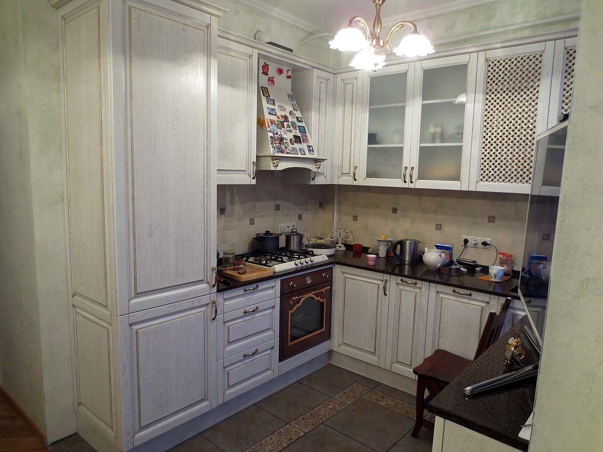 Белая кухня «Вилла» поразит вас незамысловатым, но и не лишенным своей «изюминки» дизайном. Ее можно заметить в разнообразии дверок верхних шкафчиков: кроме простых глухих, имеются еще стеклянные и решетчатые фасады. Столешница коричневого цвета отлично вписывается в белоснежный интерьер. Также следует обратить внимание на необыкновенные декоративные элементы, в том числе и золотистые ручки выдвижных ящиков. «Вилла» благодаря своему небольшому размеру и универсальному классическому стилю будет уместна и в квартире, и в загородном доме. Впрочем, вы легко можете изменить цвет и размер кухни по желанию.