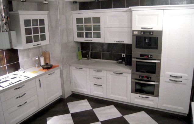 Белоснежная кухня из массива выполнена в стиле классика. Она нежная, изысканная, изящная и с аристократическими нотками. Несмотря на небольшой размер, она является продуманной и имеет в своей комплектации все самое необходимое: врезная мойка, варочная панель, духовка, посудомоечная машина, карго, сушка, пеналы для хранения, рабочая поверхность. Любая хозяйка оценит линейное расположение кухни по двум стенам, что делает перемещение и передвижения легкими и рациональными. Кухня Дору идеально впишется в любой классический интерьер и визуально увеличит пространство.