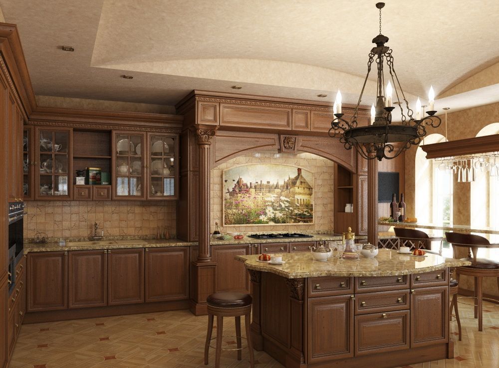 Кухня классик Аркадия, выполненная из дубового массива в изысканной манере дворянского гнезда, создает неповторимый душевный уют для вашего дома. Мы выполняем комплект любых размеров, с кухонным островом и барной стойкой в едином стиле