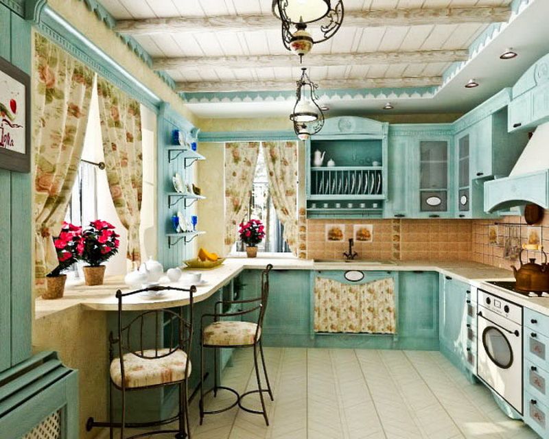 Лазурная романтика от российского производителя мебели, воплощенная в кухонном ансамбле Бриз, очаровывает своей милой непосредственностью и нежностью. Удивительный шебби –шик оживляет атмосферу минувших лет в современных материалах и красках. Яркая мебель, следуя стилю, сделана в лучших традициях прошлых лет, сочетает функциональность и изящную простоту. Современная техника умело скрыта за фасадами. Расставленная на открытых полках посуда цветов мебели, служит прекрасным декором помещения. Текстиль в нежных цветочных тонах создает удивительную атмосферу деревенского дома, стоящего на берегу моря, пахнущего парным молоком, морским прибоем и луговыми цветами.