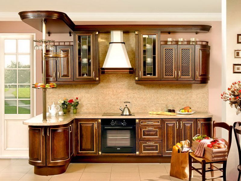 Благородная старина деревянного массива, сдержанная и роскошная композиция угловой кухни Граф с витражными вставками сделают любую кухню удивительно комфортной, элегантной и благородно оформленной в классическом стиле