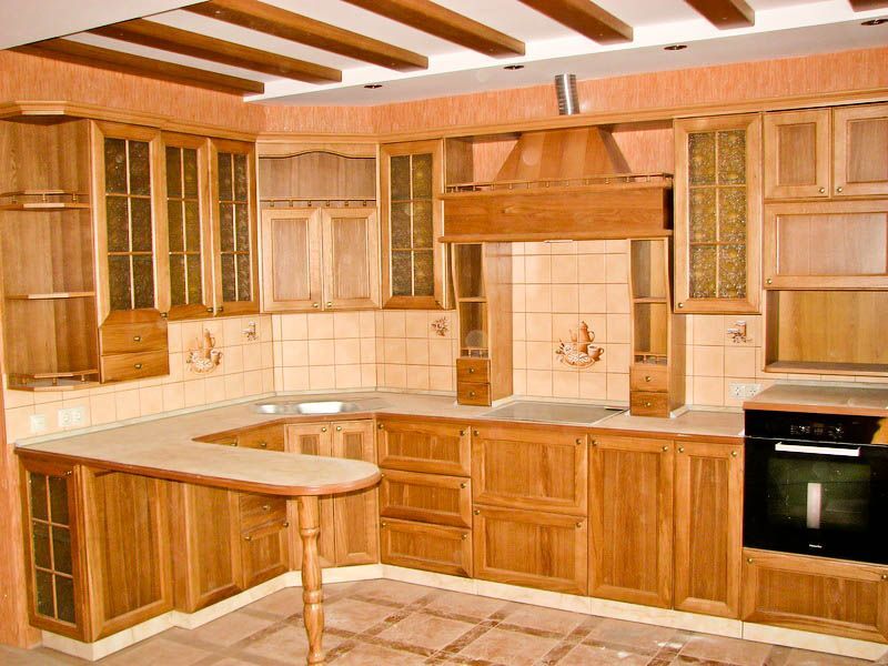 Кухня Янтарь, которую вы можете приобрести у нас от производителя на заказ, выполнена из массива дуба. Умелая обработка подчеркнула естественную структуру надежного дерева, а сама конструкция углового комплекта дополнена вытяжкой, барной стойкой, и, по индивидуальному проекту, возможен заказ стульев с тола в том же стиле. Деревенское оформление светлой кухни Янтарь может превратиться в стиль кантри, тропический или Прованс, если вы творчески продумаете детали интерьера. Клетчатые ткани и индейские мотивы создадут стиль Дикого Запада. Нежные льняные скатерти и пастельные оттенки посуды и элементов декора сформируют Прованс, а самовар и деревянные композиции с росписью – стиль русской деревни.