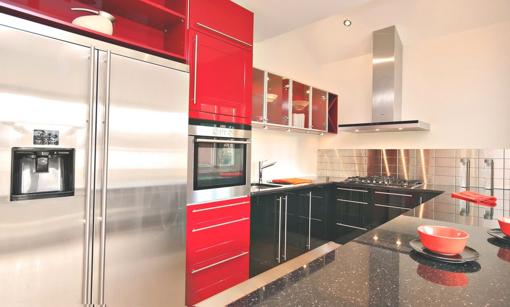 Современная кухня «Малика» исполнена в ярких тонах. Кухня имеет пять ярко-красных тумбочек для хранения посуды. Также кухня включает верхние четыре белые тумбочки с прозрачными стеклянными дверками. Большая столешница сделана «под камень» черного цвета, что обеспечивает удобную готовку. Кухня «Малика» также имеет несколько черных тумбочек. Очень удобна и многофункциональна кухня подойдет к любому интерьеру в доме, при этом обеспечит приятную и легкую готовку. Яркую кухню «Малика» от производителя в разных тонах можно заказать недорого и из высококачественного материала.