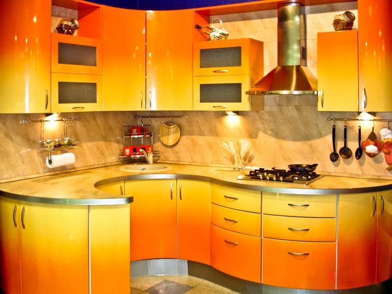 Отвлечься от повседневности и создать в доме сказочный уголок, где приятно отдохнуть от стремительной действительности, можно приобретя кухонный гарнитур Манго. Необычная форма глянцевых фасадов из пластика, покрытых сверхпрочной и безопасной для здоровья эмалью, создает в доме особое сюрреалистическое ощущение. Плавный силуэт угловой кухни позволяет разместить гарнитур даже в небольшом помещении. Несмотря на свой необычный дизайн, мебель очень функциональна. Перелив солнечного цвета в сочетании с бликами металлической фурнитуры усиливает ощущение нереальности фантастической атмосферы. Такая кухня станет излюбленным местом в доме, где так легко окунуться в мир фантазий.