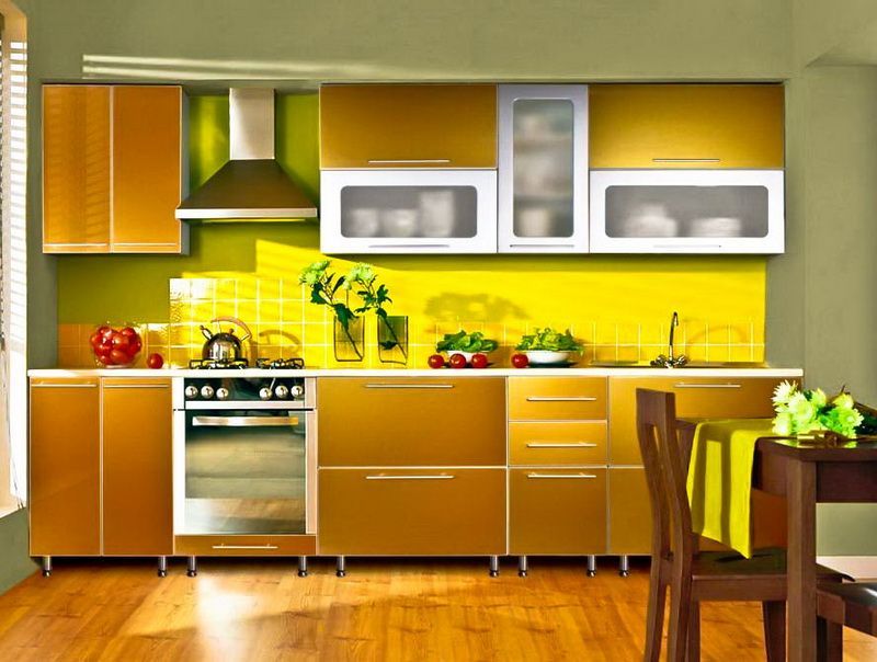 Люди с прогрессивными взглядами на жизнь наверняка оценят новомодный дизайн недорогой оранжевой кухни Сахара, сделанной по последнему слову техники. Оттенки эмали и их сочетания могут быть подобраны на заказ