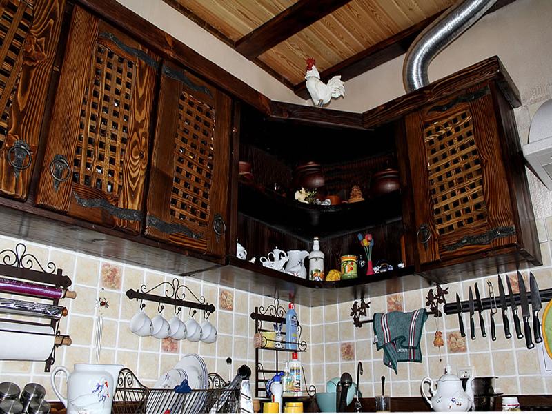 Прочность, стойкость к повреждениям и непревзойденное оформление кухни Святогор позволяют ей влиться в дизайн кухонного помещения под старину, снабдив домовитую хозяйку практичным и функциональным предметом быта. Открытые угловые полки отлично подходят для хранения самых нужных элементов кухонной утвари, а еще придают помещению яркий оттенок древности. Качественная фурнитура дополняет мебельный ансамбль из натурального дерева, способного прослужить не один год, сохранив при этом первозданную энергетику природы. Гарнитур Святого станет лучшим решением для оформления вашей кухни.
