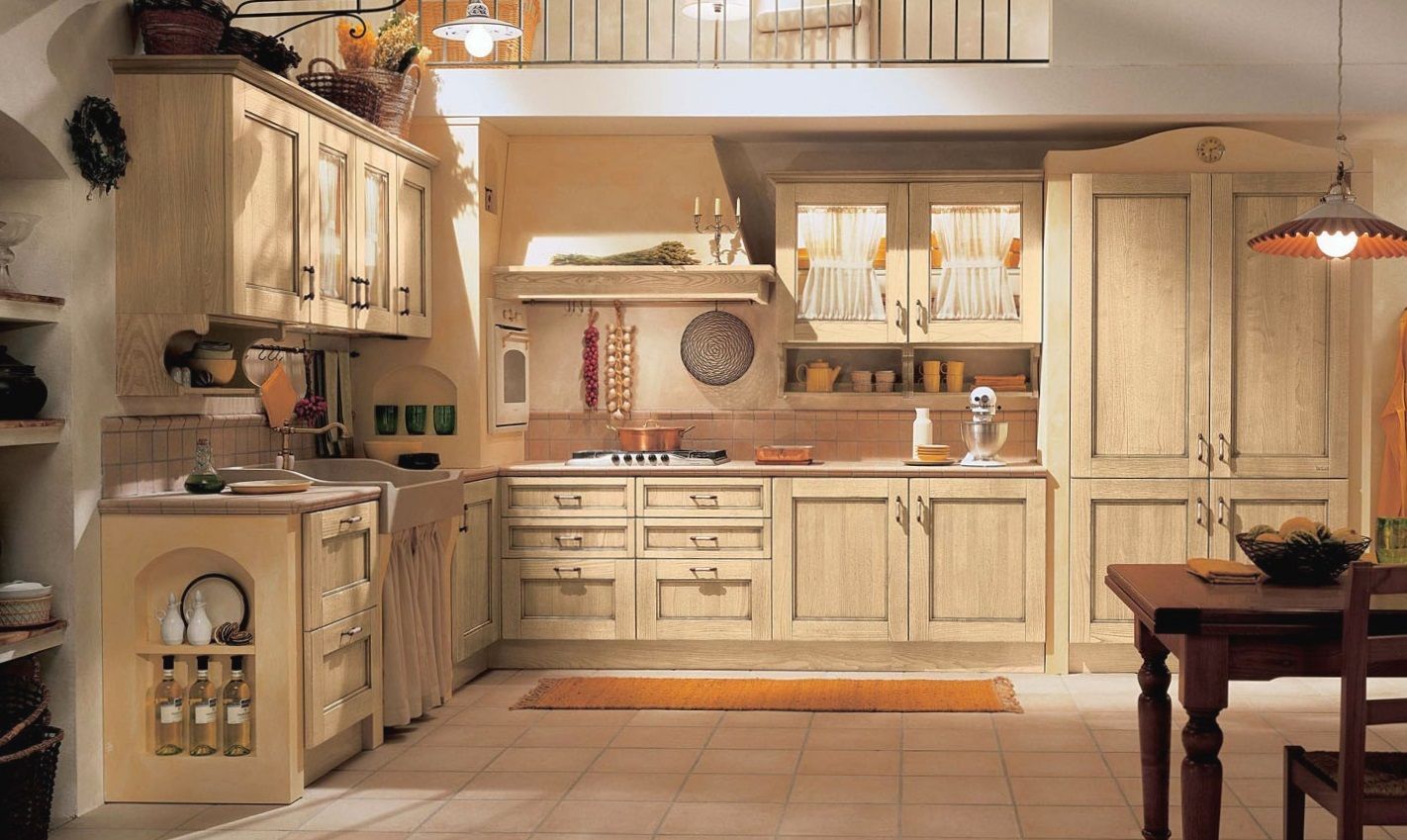 Кухонная мебель Лайма отличается необыкновенным оформлением. Светлые оттенки дерева, пробивающаяся текстура, патина, элегантная фурнитура – всё это является воплощением классического направления, выбранного для этой модели. Это угловая мебель, состоящая из множества разных модулей. Основными являются секции с варочной и моечной поверхностью. Они также подобраны в соответствии со стилем и общим направлением. Эти тумбочки разделены небольшими шуфлядками и глухими дверками. Столешница подобрана в тон и выполнена из светлого камня. Особенно привлекательно выглядят верхние модули. Помимо ажурных дверок они отличаются утончёнными дополнительными полочками.