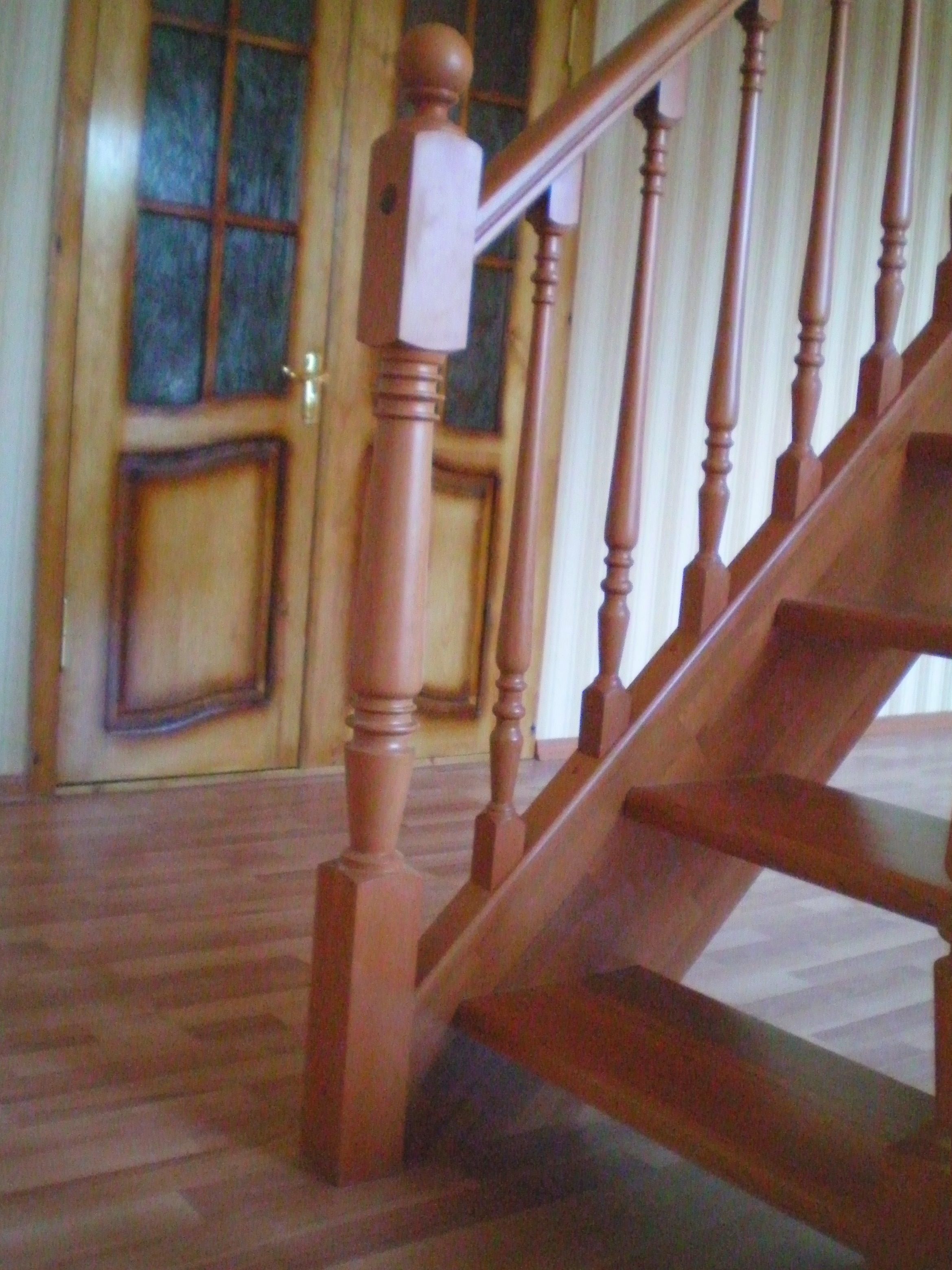 Предлагаем вашему вниманию открытую лестницу Ришелье. Ступеньки красиво закреплены на тетиве изготовленной из дерева твердой породы. Лестница выкрашена в темный оттенок, что придает модели своей индивидуальности. Первая ступенька находить в двадцати сантиметрах от пола. Хоть ступеньки друг от друга расположены на большом расстоянии, а это около 30 см, благодаря удачному наклону тетивы ходить по такой лестнице удобно. Столбики перил имеют красиво вырезанные формы. Самый первый по размерам большим, те которые идут дальше - в несколько раз тоньше. Студия мебели Зеус предлагает всем желающим заказать себе именно такую модель лестницы Ришелье.