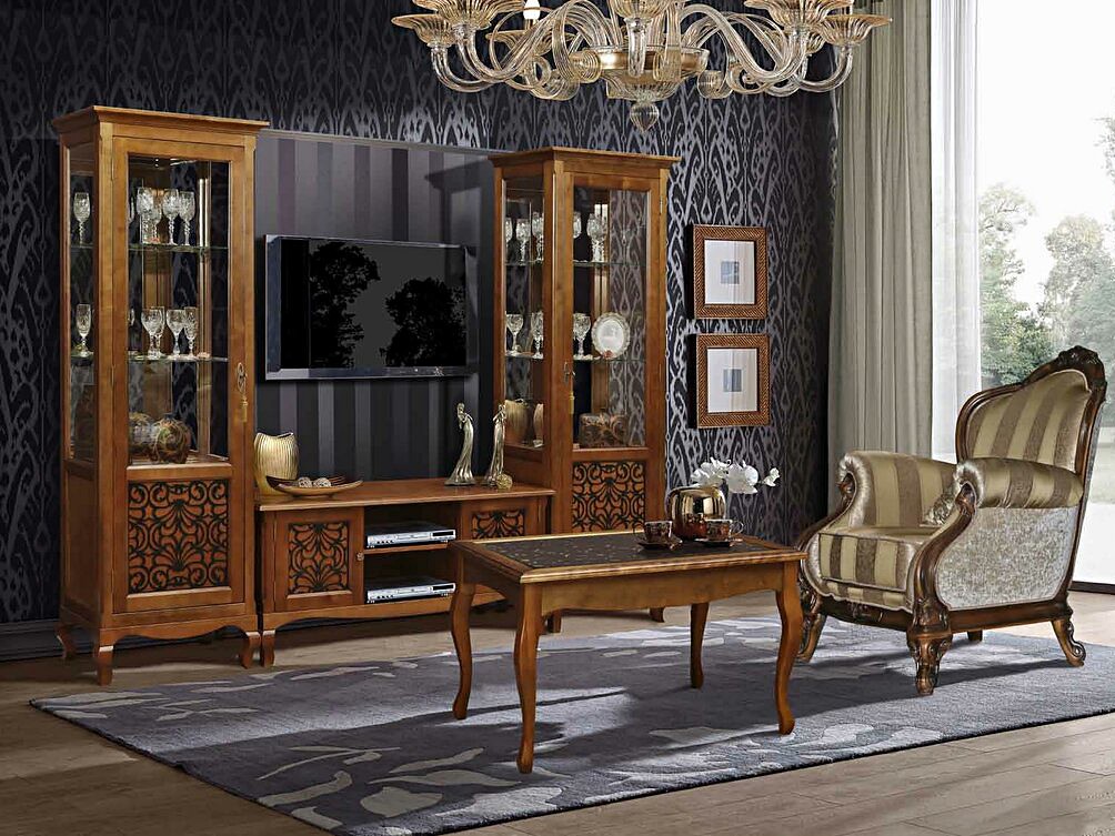 Классическая гостиная стенка Жан выполнена из темного дерева. Украсит любую комнату своим величеством, создав в нем особые ощущения, как будто вы находитесь в викторианской библиотеке. Гостиная Жан выполнена так, что мебель отлично становиться в угол. По одну сторону дверки выполнены из стекла, а по другую сторону стоят зеркала. Нижняя часть мебели закрыта сплошными дверками. Полки глубокие и вместительные. Заказать в студии Зеус гостиную Жан очень просто. Хотите изменение? Спешите приобрести красивую и не дорогую мебель.
